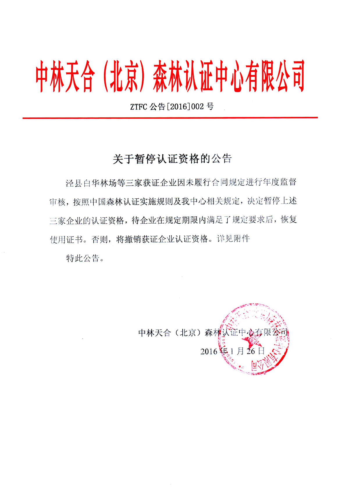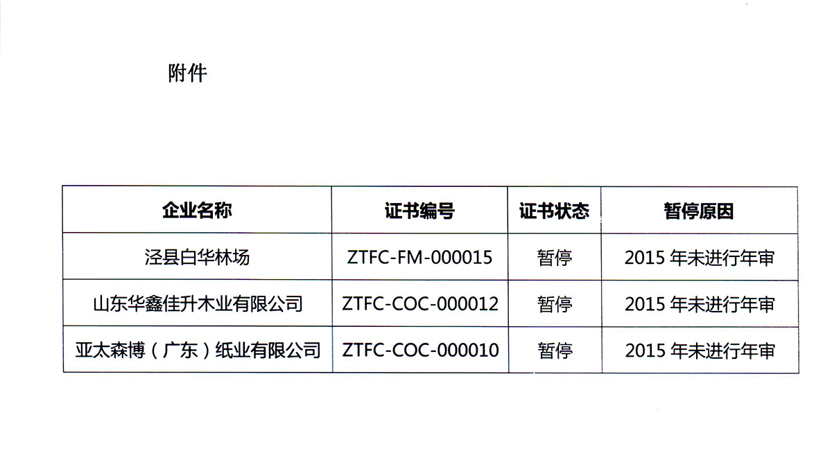 關(guān)于暫停認證資格的公告